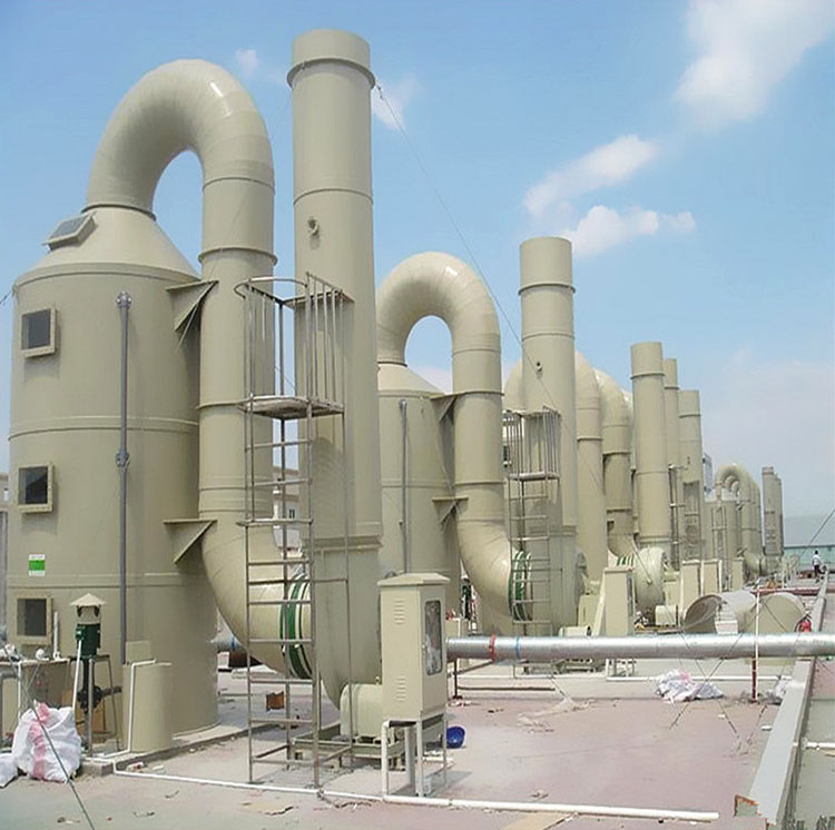 噴淋塔又名洗滌塔,水洗塔,是氣液發(fā)生裝置。廢氣與液體充分接觸,利用其在水中的溶解度或者利用化學(xué)反應(yīng),加藥來(lái)降低其濃度,從而成為符合國(guó)家排放標(biāo)準(zhǔn)的潔凈氣體。主要用來(lái)處理無(wú)機(jī)廢氣,如硫酸酸霧,氯化氫氣體,氮的不同價(jià)態(tài)氧化物氣體,即NOx,粉塵廢氣等。