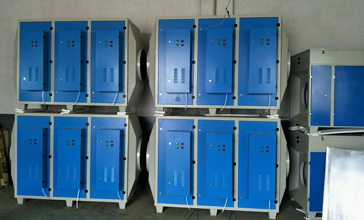 等離子凈化設備內(nèi)部裝有獨特的碰吸單元,截留去除廢氣中的顆粒物質(zhì),廢氣收集系統(tǒng)收集的多元素氣體經(jīng)過等離子活性氧凈化裝置,在高壓等離子電場的作用下,電離初始態(tài)氧將其中的廢氣離子進行電離荷電凈化,帶電的微小離子(塵埃粒子)被吸附單元所收集并流入和沉積到氣體處理裝置的儲塵箱內(nèi),氣體內(nèi)的有害氣體被電場內(nèi)所產(chǎn)生的臭氧所殺菌,并去除了異味,有害氣體被除掉,達到廢氣處理的目的。