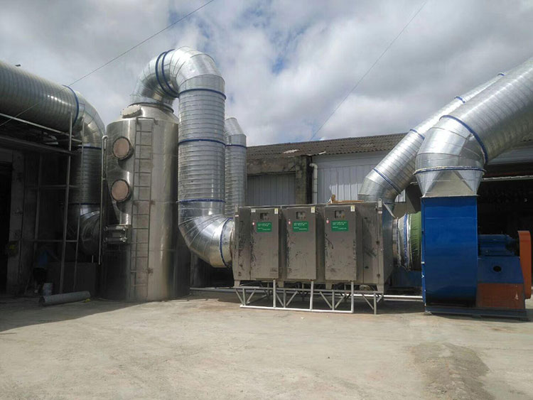 UV光解設(shè)備是利用特制的高能高臭氧UV紫外線光束照射廢氣,裂解工業(yè)廢氣如:氨、三甲胺、硫化氫、甲硫氫、甲硫醇、甲硫醚、乙酸丁酯、乙酸乙酯、二甲二硫、二硫化碳和苯乙烯,硫化物H2S、VOC類,苯、甲苯、二甲苯的分子鏈結(jié)構(gòu),使有機或無機高分子惡臭化合物分子鏈,在高能紫外線光束照射下,降解轉(zhuǎn)變成低分子化合物,如CO2、H2O等。利用高能高臭氧UV紫外線光束分解空氣中的氧分子產(chǎn)生游離氧,即活性氧,因游離氧所攜正負電子不平衡所以需與氧分子結(jié)合,進而產(chǎn)生臭氧。 UV+O2→O-+O*(活性氧)O+O2→O3(臭氧),眾所周知臭氧對有機物具有的氧化作用,對工業(yè)廢氣及其它刺激性異味有立竿見影的清除效果。工業(yè)廢氣利用排風(fēng)設(shè)備輸入到本凈化設(shè)備后,凈化設(shè)備運用高能UV紫外線光束及臭氧對工業(yè)廢氣進行協(xié)同分解氧化反應(yīng),使工業(yè)廢氣物質(zhì)其降解轉(zhuǎn)化成低分子化合物、水和二氧化碳,再通過排風(fēng)管道排出室外。利用高能UV光束裂解工業(yè)廢氣中細菌的分子鍵,破壞細菌的核酸(DNA),再通過臭氧進行氧化反應(yīng),達到凈化及殺滅細菌的目的.從凈化空氣效率考慮,我們選擇了-C波段紫外線和臭氧發(fā)結(jié)合電暈電流較高化裝置采用脈沖電暈放吸附技術(shù)相結(jié)合的原理對有害氣體進行消除,其中-C波段紫外線主要用來去除硫化氫、氨、苯、甲苯、二甲苯、甲醛、乙酸乙酯、乙烷、丙酮、尿烷、樹脂、等氣體的分解和裂變,是有機物變?yōu)闊o機化合物。 凈化裝置由初濾單元、-C波段紫外線裝置,降解收集,臭氧發(fā)生器及過濾單元等設(shè)備和部件組成。